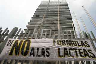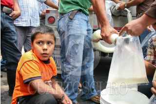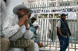 MÉXICO, D.F., 24JULIO2008.- Productores de leche de varios estados del país, se manifestaron frente a las instalaciones de la Secretaria de Economía, donde pidieron el freno a las importaciones de leche en polvo, en caso de no hacerlo amenazaron con llegar con vacas al Distrito Federal para que cumplan sus demandas. FOTO: RICARDO CASTELAN/CUARTOSCURO.COM