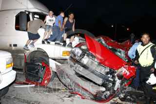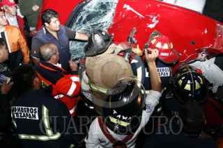TLANEPANTLA, ESTADO DE MÉXICO., 28JULIO2008.- Una persona perdió la vida después de ser envestido por un trailer en el cruce de la autopista México-Queretaro y la Chamapa-Lecheria en el kilometro 29. En la imagen elementos de rescate liberan al cadaver del automovil. FOTO: SAÚL LÓPEZ/CUARTOSCURO.COM