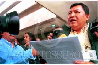 Guillermo May, integrante del consejo Indígena leyó un comunicado, en el que señala que el gobierno federal no ha cumplido los requisitos que solicitó el EZLN, para el diálogo de paz. FOTO: Victoria Valtierra/CUARTOSCURO.COM