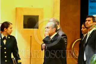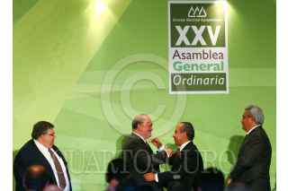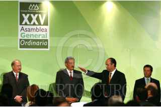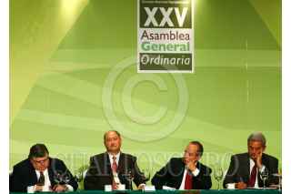 MÉXICO, D.F., 29JULIO2008.- El presidente Felipe Calderon, a su salida de la clausura de la Vigésima Quinta Asamblea General Ordinaria de dicho organismo. FOTO: ISAAC ESQUIVEL/CUARTOSCURO.COM