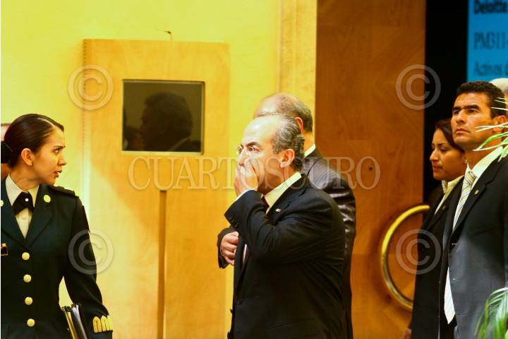 MÉXICO, D.F., 29JULIO2008.- El presidente Felipe Calderon, a su salida de la clausura de la Vigésima Quinta Asamblea General Ordinaria de dicho organismo. FOTO: ISAAC ESQUIVEL/CUARTOSCURO.COM