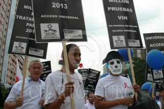 MÉXICO D.F., 03AGOSTO2008.- Diversas organizaciones marcharon del Monumento a la Revolución al Zócalo capitalino como parte de las actividades previas al arranque de la XVII conferencia sobre Sida, que se inaugurará oficialmente hoy por la noche. FOTO: SÁSHENKA GUTIÉRREZ/CUARTOSCURO.COM