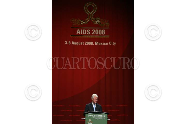 MÉXICO, D.F., 04AGOSTO2008.- William Clinton, ex presidente de los Estados Unidos durante una conferencia magistral dentro de las actividades de la Conferencia Internacional sobre el SIDA que se realiza en el centro Banamex. FOTO: RODOLFO ANGULO/CUARTOSCURO.COM