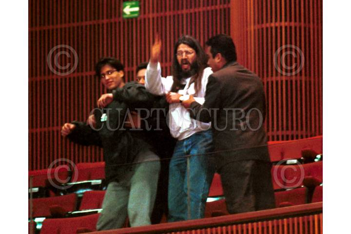 Diputados perredistas inconformes por la votación con la cual se aprobo la LeyIndigena protestan frente a la bancada del PAN. FOTO:Oswaldo Ramírez/CUARTOSCURO.COM