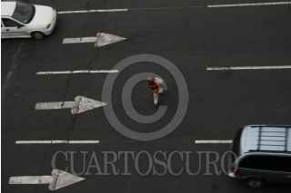 MÉXICO, D.F., 04AGOSTO2008.- Un hombre atraviesa la calle 16 de Septiembre para llegar al edificio de gobierno. FOTO: RICARDO CASTELAN /CUARTOSCURO.COM