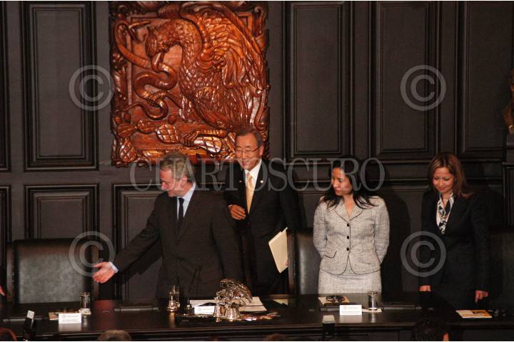 MÉXICO D.F., 04AGOSTO2008.-Ban Ki-moon Secretario General de la ONU, acudió a las instalaciones del Senado de la República, donde realizó una guardia de honor ante el monumento de Belisario Domínguez y acudió a la sesión solemne por su visita. FOTO: GUILLERMO PEREA/CUARTOSCURO.COM