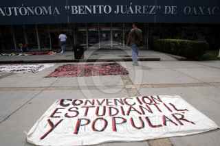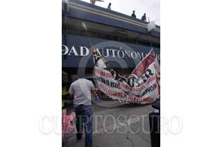 OAXACA, OAXACA 05AGOSTO2008.-El comité estudiantil de alumnos rechazados tomo de nueva cuenta las instalaciones de la máxima casa de estudios donde por un lapso de dos horas colocaron mantas en forma de protesta ante la propuesta del rector Rafael Torres Valdez de rehabilitar solo una cantidad de exámenes de ingreso FOTO: MAX NÚÑEZ/CUARTOSCURO.COM
