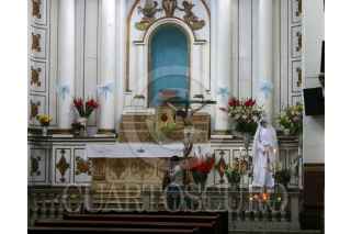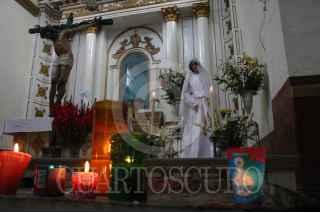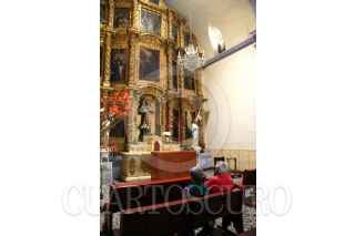 OAXACA, OAXACA 05AGOSTO2008.-La virgen y la iglesia de las nieves, festejo hoy su día con una presencia mínima, donde es costumbre que en los primeros días del mes se den tres monedas que simbolizan salud dinero y trabajo. Este santo caracterizado por se devoción de personas en años anteriores dio crédito a un sin fin donaciones para su mantenimiento pese a ello arquitectónicamente la iglesia muestra signos de abandono , donde pocos peregrinos acuden. FOTO: MAX NÚÑEZ/CUARTOSCURO.COM