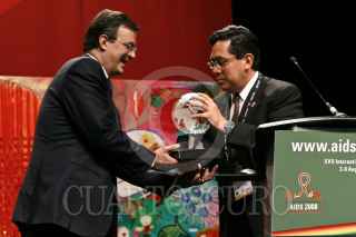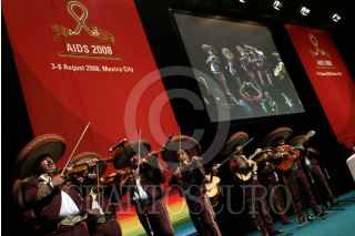 MÉXICO D.F., 08AGOSTO2008.- Al termino de la ceremonia de clausura de la XVII Conferencia Internacional sobre el SIDA que se realizo en el centro Banamex un grupo de marichi amenizo la salida de los asistentes. FOTO: RODOLFO ANGULO/CUARTOSCURO.COM