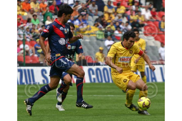 MÉXICO, D.F., 10AGOSTO2008.- Salvador Cabañas de las águilas del América intenta controlar el balón durante el partido enfrentado en contra de monarcas Morelia; encuentro de la jornada 3 que termino empatado a 1 gol. FOTO: RODOLFO ANGULO/CUARTOSCURO.COM