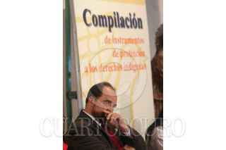 MÉXICO D.F., 11AGOSTO2008.- Emilio Alvares Icaza, presidente de la Comisión de Derechos Humanos en el D.F., presento la compilación de instrumentos de protección a los derechos indígenas, esto durante un evento realizado en el Claustro de Sor Juana. FOTO: RICARDO CASTELAN /CUARTOSCURO.COM