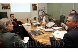 MÉXICO D.F., 11AGOSTO2008.- El consejero presidente del Instituto Federal Electoral, Leonardo Váldes Zurita sostuvo una reunión de trabajo en sus oficinas del IFE con los consejeros electos María Macarita Elizondo Gasperín, Francisco Guerrero Aguirre y Alfredo Figueroa Fernández, quienes tomarán protesta el próximo viernes 15 de agosto. FOTO: OSCAR BELTRAN/CUARTOSCURO.COM