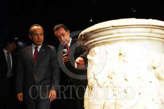 MÉXICO D.F., 11AGOSTO2008.- Felipe Calderon Hinojosa presidente de México, durante la inaguración de la exposición España, encrucijada de civilizaciones que tuvo lugar en el museo nacional de antropología. FOTO: ALFREDO GUERRERO/CUARTOSCURO.COM