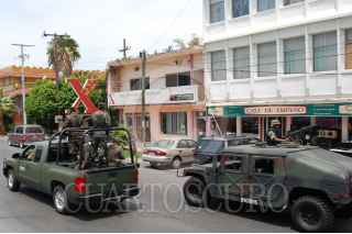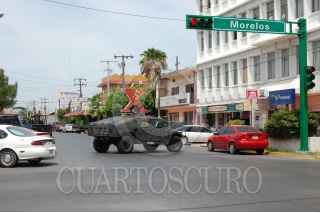 NUEVO LAREDO, TAMAULIPAS., 11AGOSTO2008.- Elementos del Ejército Mexicano catearon el Motel del Centro, ubicado a un costado al norte de la Presidencia Municipal, en donde después de dos horas y media, sacaron a bordo de un vehículo militar, varias cajas de cartón y una hielera, sin dar datos sobre el contenido de estos. FOTO: RENÉ MARTÍNEZ/CUARTOSCURO.COM