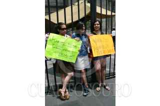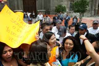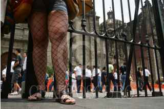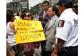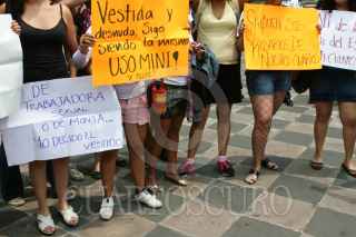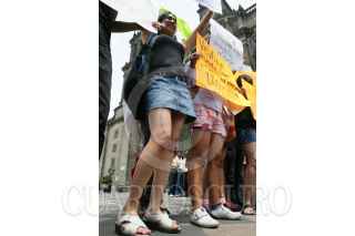 MÉXICO, D.F., 17AGOSTO2008.- Jóvenes con minifalda protestaron en el atrio de la Catedral Metropolitana, en de la recomendación emitida por la Arquidiócesis de México, en el sentido de que las mujeres no usen ropa provocativa para evitar agresiones sexuales. FOTO: ISAAC ESQUIVEL/CUARTOSCURO.COM