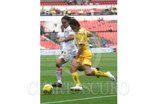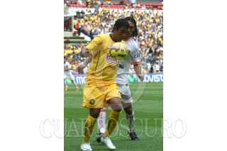 MÉXICO, D.F., 24AGOSTO2008.- Los Jaguares de Chiapas derrotaron 3-2 a las Águilas del América, en el Estadio Azteca, en el cierre de la jornada 5 del torneo de apertura 2008. En la imágen: Alfredo Moreno pelea el balon tras Daniel Hernández. FOTO: SÁSHENKA GUTIÉRREZ/CUARTOSCURO.COM
