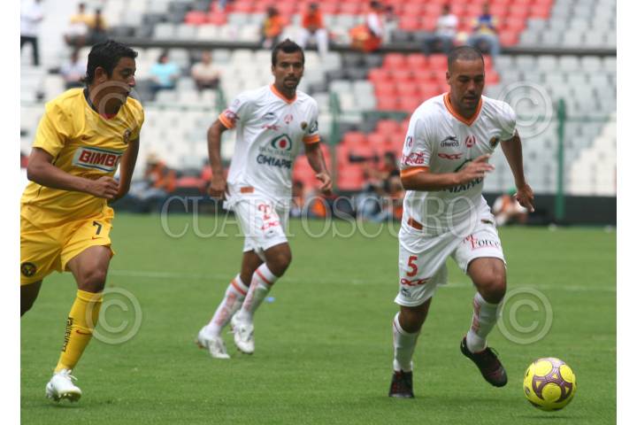 MÉXICO, D.F., 24AGOSTO2008.- Los Jaguares de Chiapas derrotaron 3-2 a las Águilas del América, en el Estadio Azteca, en el cierre de la jornada 5 del torneo de apertura 2008. En la imágen: Alfredo Moreno pelea el balon tras Daniel Hernández. FOTO: SÁSHENKA GUTIÉRREZ/CUARTOSCURO.COM