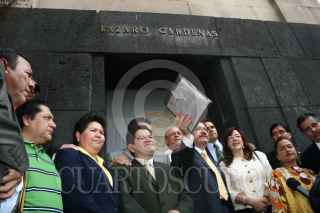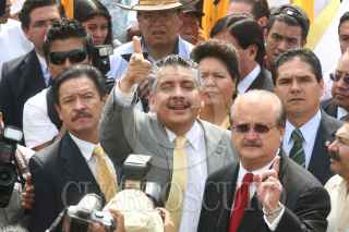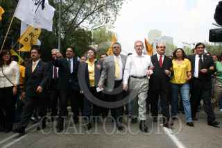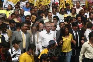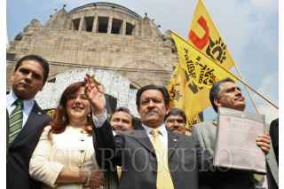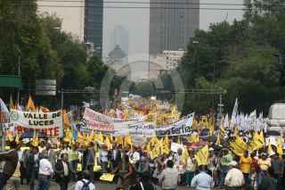 MÉXICO, D.F., 25AGOSTO2008.- Integrantes del FAP se dieron cita en el monumento a la revolución y marcharon por las principales calles del Centro Histórico, para dirigirse al senado de la republica donde entregaron su propuesta de reforma energética para su discusión en la Comisión permanente. FOTO: SÁSHENKA GUTIÉRREZ/CUARTOSCURO.COM