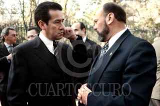 El secretario de Gobernación Diódoro Carrasco y el diputado panista Francisco José Paoli Bolio al término de la ceremonia conmemorativa de la Marcha de la Lealtad.