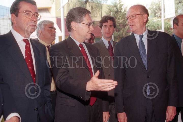 El Ministro de economía de Francia, Francois Huwont saluda a su homónimo mexicano Luis Ernesto Derbez, durante la inauguración de la exposición "Tecnológica Francia 2001" en el World Trade Center. FOTO: Christian Palma/CUARTOSCURO.COM