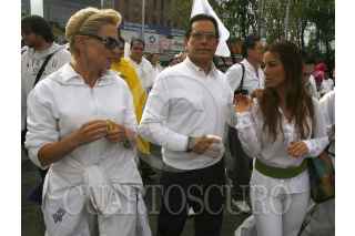 MÉXICO, D.F., 30AGOSTO2008.- Los conductores Juan José origel y Claudia Lizaldi, asistieron a la marcha Iluminemos México que se realizo del Ángel de la Independencia al Zócalo capitalino en contra de la inseguridad en el país y el rechazo a la violencia. FOTO: IVAN MENDEZ/CUARTOSCURO.COM