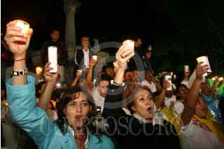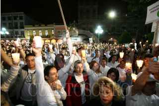 PUEBLA, PUEBLA, 31AGOSTO2008.- Los poblanos se unieron a la marcha "Iluminemos México" contra la delincuencia. Cientos de poblanos acudieron al zócalo de esta ciudad para decir "Ya Basta" a la ola de crÌmenes y violencia que se han presentado a lo largo de toda la república. FOTO: JAVIER PALACIOS/CUARTOSCURO.COM