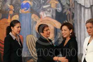 MÉXICO D.F., 04JULIO2008.- Josefina Vázquez Mota, titular de la SEP, realizó la presentación del libro “Cuando Despierta el Monstruo” acompañada de su autora María Antonieta Collins. FOTO: GUILLERMO PEREA/CUARTSOCURO.COM