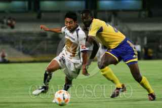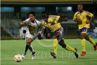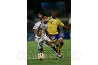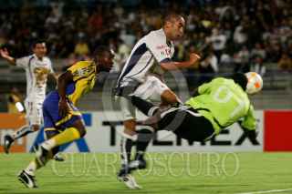 MÉXICO, D.F., 04SEPTIEMBRE2008.- David Toledo de los Pumas de la UNAM es perseguido por Mitchily Waul del Harbour View, en el partido eliminatorio de la Copa de Campeones de la Concacaf, disputado en el estadio de Ciudad Universitaria, el cual se encuentra empatado a cero tantos al medio tiempo. FOTO: ISAAC ESQUIVEL/CUARTOSCURO.COM
