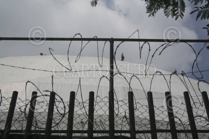 NAUCALPAN, ESTADO DE MEXICO, 05SEPTIEMBRE2008.- Decenas de Trabajadores comenzaron el desmantelamiento del Toreo de Cuatro Caminos, construccion colosal que se encuentra entre los limites del estado de Mexico y el Distrito Federal. El espacio servira para un centro Comercial que se construira en el lugar. FOTO: ENRIQUE ORDOÑEZ/CUARTOSCURO.COM