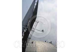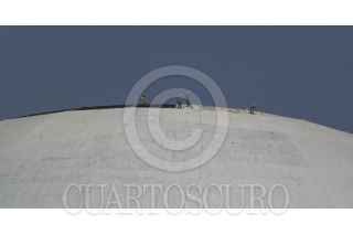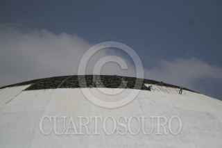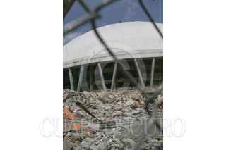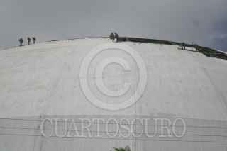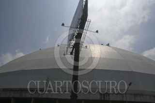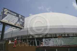 NAUCALPAN, ESTADO DE MEXICO, 05SEPTIEMBRE2008.- Decenas de Trabajadores comenzaron el desmantelamiento del Toreo de Cuatro Caminos, construccion colosal que se encuentra entre los limites del estado de Mexico y el Distrito Federal. El espacio servira para un centro Comercial que se construira en el lugar. FOTO: ENRIQUE ORDOÑEZ/CUARTOSCURO.COM