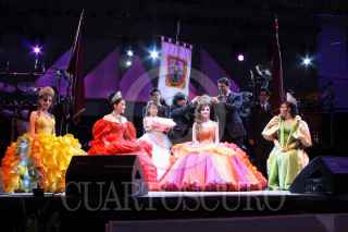 ZACATECAS, ZACATECAS, 06SEPTIEMBRE08.- La coronación de la reina de la "FENAZA 2008", se llevó acabo después de el recorrido inaugural, en esta ocasión fué coronada Paola, primera quién recibió la corona de manos de la gobernadora Amalia García Medina y el alcalde capitalino Cuauhtémoc Calderon Galvan. El evento se realizó en el nuevo teatro del pueblo. FOTO: COSME RADA / CUARTOSCURO.COM