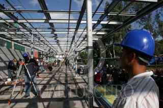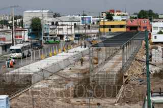 MÉXICO, D.F., 06SEPTIEMBRE2008.- La línea 2 del del Metrobus que correrá de Tacubaya a Tepalcates sobre el Eje 4 Sur, se encuentra casi lista ya que la mayoría de las paradas están en un 70% terminadas, según lo señalo Jorge Arganís, Secretario de Obras del GDF, él cual recorrio en su totalidad la obra y pudo constar los avances. Otra obra que esta a punto de ser concluida es el Centro de Transferencia Multimodal Tepalcates, en el cual convergerán los pasajeros que lleguen del Metrobus, Trolebuses, microbuses y Metro y contará con 3 niveles y capacidad de 120 locales comerciales y que estará lista para el mes de diciembre. FOTO: MOISÉS PABLO/CUARTOSCURO.COM
