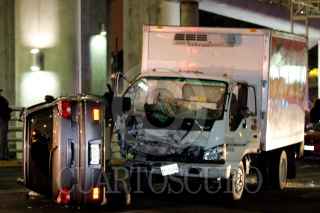MÉXICO, D.F., 10SEPTIEMBRE008.- Por segundo día consecutivo en el Distrito Federal, un camión de la empresa "Bachoco" se ve involucrado en un accidente, en esta ocasión el exceso de velocidad provoco la doble volcadura en la avenida san jerónimo y el anillo periférico sur, con saldo de cuatro personas gravemente lesionadas. FOTO: LUZ ACEVEDO/CUARTOSCURO.COM