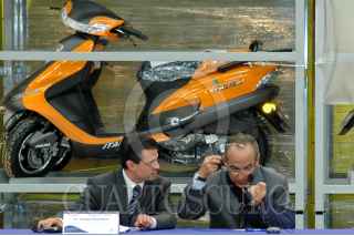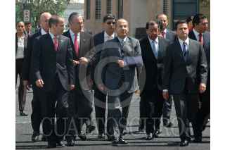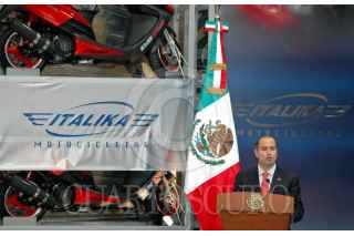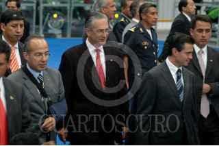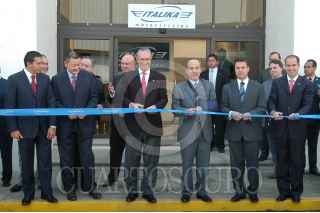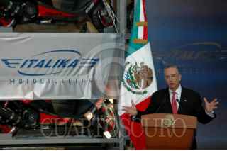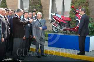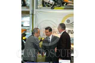 TOLUCA, ESTADO DE MÉXICO, 10SEPTIEMBRE2008.- El Presidente Felipe Calderón saluda a el gobernador del Estado de México, Enrique Peña Nieto durante la inauguración de la planta ensambladora de motocicletas Italika que fue inaugurada el día de hoy. FOTO: RODOLFO ANGULO/CUARTOSCURO.COM