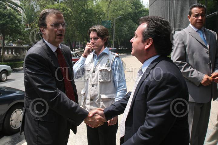 MÉXICO, D.F., 10SEPTIEMBRE008.- Marcelo Ebrard Casaubón, Jefe de Gobierno, Guillermo Prieto Treviño, presidente de la Bolsa Mexicana de Valores y Mario Delgado, Secretario de Finanzas del DF, durante la ceremonia de arranque de los fondos de inversión "Ciudad DF" que se realizó en la sede de BMV. FOTO: MOISÉS PABLO/CUARTOSCURO.COM