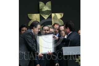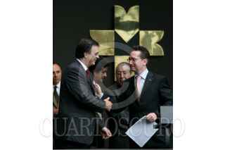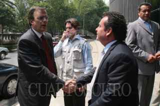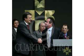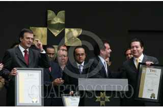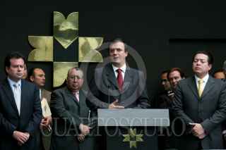 MÉXICO, D.F., 10SEPTIEMBRE008.- Marcelo Ebrard Casaubón, Jefe de Gobierno, Guillermo Prieto Treviño, presidente de la Bolsa Mexicana de Valores y Mario Delgado, Secretario de Finanzas del DF, durante la ceremonia de arranque de los fondos de inversión "Ciudad DF" que se realizó en la sede de BMV. FOTO: MOISÉS PABLO/CUARTOSCURO.COM
