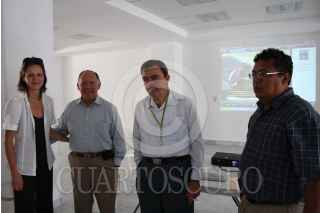 CHILPANCINGO, GUERRERO, 10SEPTIEMBRE2008.- El candidato a la alcaldía de Chilpancingo del Partido Convergencia; Victor Wences (derecha), acompañado de Karl Nagel, Jorge Ponce de León y la candidata a diputada local por el decimo quinto distrito Concepción Valdez Ortega, durante la presentación que hicieron a los medios de comunicación del "Proyecto de Tecnologías Alternativas para el Abastecimiento de Agua Potable y Recolección de Basura para la Capital del Estado" en su casa de campaña. FOTO: OSCAR ALVARADO/CUARTOSCURO.COM