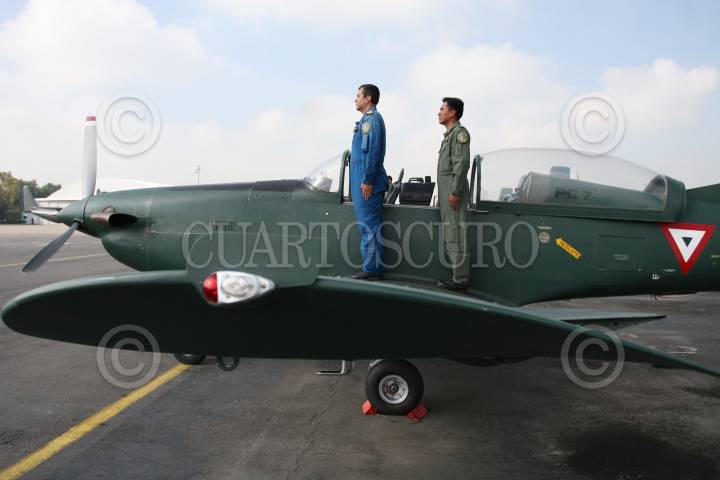 SANTA LUCIA, ESTADO DE MÉXICO, 11SEPTIEMBRE2008.-Elementos de la Fuerza Aérea Mexicana y Armada de México, realizaron practicas de preparación en la Base Aeréa No.1 de Santa Lucía, esto por su próxima participación en el desfile militar del 16 de Septiembre con el que se conmemora el 198 Aniversario del inicio de la Independencia Nacional. En el desfile participaran con Helicópteros de los modelos MI-17, UH-60, CH-53, MD-530F y con los aviones, Hercules C-130, F-5 E/7, Pilatus PC-/7 y Arava 101A. FOTO: GUILLERMO PEREA/CUARTOSCURO.COM
