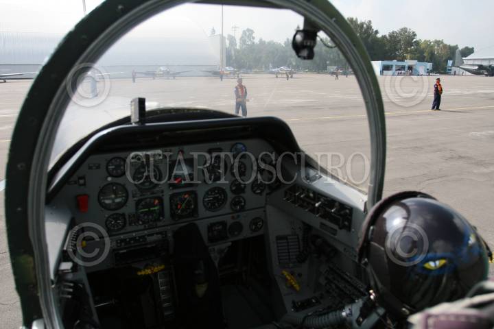 SANTA LUCIA, ESTADO DE MÉXICO, 11SEPTIEMBRE2008.-Elementos de la Fuerza Aérea Mexicana y Armada de México, realizaron practicas de preparación en la Base Aeréa No.1 de Santa Lucía, esto por su próxima participación en el desfile militar del 16 de Septiembre con el que se conmemora el 198 Aniversario del inicio de la Independencia Nacional. En el desfile participaran con Helicópteros de los modelos MI-17, UH-60, CH-53, MD-530F y con los aviones, Hercules C-130, F-5 E/7, Pilatus PC-/7 y Arava 101A. FOTO: GUILLERMO PEREA/CUARTOSCURO.COM