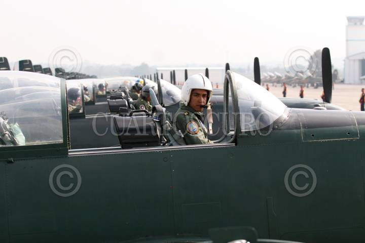 SANTA LUCIA, ESTADO DE MÉXICO, 11SEPTIEMBRE2008.-Elementos de la Fuerza Aérea Mexicana y Armada de México, realizaron practicas de preparación en la Base Aeréa No.1 de Santa Lucía, esto por su próxima participación en el desfile militar del 16 de Septiembre con el que se conmemora el 198 Aniversario del inicio de la Independencia Nacional. En el desfile participaran con Helicópteros de los modelos MI-17, UH-60, CH-53, MD-530F y con los aviones, Hercules C-130, F-5 E/7, Pilatus PC-/7 y Arava 101A. FOTO: GUILLERMO PEREA/CUARTOSCURO.COM