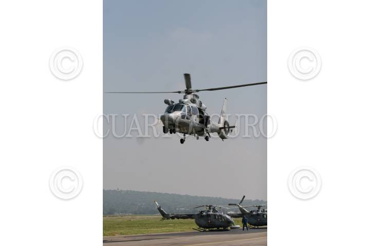 SANTA LUCIA, ESTADO DE MÉXICO, 11SEPTIEMBRE2008.-Elementos de la Fuerza Aérea Mexicana y Armada de México, realizaron practicas de preparación en la Base Aeréa No.1 de Santa Lucía, esto por su próxima participación en el desfile militar del 16 de Septiembre con el que se conmemora el 198 Aniversario del inicio de la Independencia Nacional. En el desfile participaran con Helicópteros de los modelos MI-17, UH-60, CH-53, MD-530F y con los aviones, Hercules C-130, F-5 E/7, Pilatus PC-/7 y Arava 101A. FOTO: GUILLERMO PEREA/CUARTOSCURO.COM