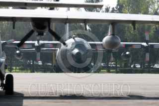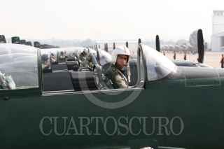 SANTA LUCIA, ESTADO DE MÉXICO, 11SEPTIEMBRE2008.-Elementos de la Fuerza Aérea Mexicana y Armada de México, realizaron practicas de preparación en la Base Aeréa No.1 de Santa Lucía, esto por su próxima participación en el desfile militar del 16 de Septiembre con el que se conmemora el 198 Aniversario del inicio de la Independencia Nacional. En el desfile participaran con Helicópteros de los modelos MI-17, UH-60, CH-53, MD-530F y con los aviones, Hercules C-130, F-5 E/7, Pilatus PC-/7 y Arava 101A. FOTO: GUILLERMO PEREA/CUARTOSCURO.COM