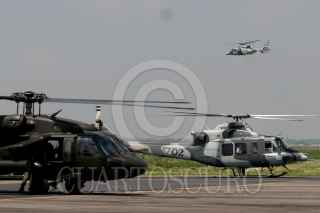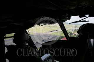 SANTA LUCIA, ESTADO DE MÉXICO. 11SEPTIEMBRE2008.-Elementos de la Fuerza Aérea Mexicana y Armada de México, realizaron practicas de preparación en la Base Aeréa No.1 de Santa Lucía, esto por su próxima participación en el desfile militar del 16 de Septiembre con el que se conmemora el 198 Aniversario del inicio de la Independencia Nacional. En el desfile participaran con Helicópteros de los modelos MI-17, UH-60, CH-53, MD-530F y con los aviones, Hercules C-130, F-5 E/7, Pilatus PC-/7 y Arava 101A. FOTO: GUILLERMO PEREA/CUARTOSCURO.COM