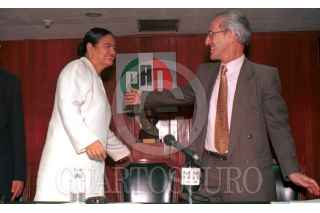 Dulce María Suri Riancho presentó a Dionisio Pérez Jácome como Presidente de la Comisión que se encargará de organizar la elección del Secretario General del P.R.I. FOTO: Christian Palma/CUARTOSCURO.COM