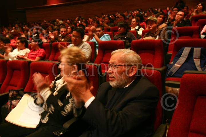 MÉXICO D.F., 17SEPTIEMBRE2008.- Los periodistas Rosalba Cruz, Miguel Ángel Granados Chapa y el director de la Facultad de Ciencias Politicas y Sociales, Fernando Castañeda, durante el homenaje que le rinde a Miguel Ángel Granados Chapa en la Facultad de Ciencias Politicas y Sociales de la Universidad Nacional Autonoma de México. FOTO: PEDRO VALTIERRA/CUARTOSCURO.COM