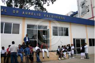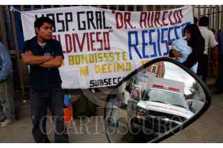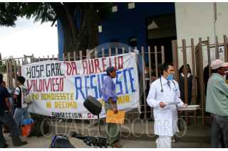 OAXACA, OAXACA 18SEPTIEMBRE2008.- Trabajadores de la Subsección 07 de la Secretaria de Salud en Oaxaca (SSO) que laboran en el Hospital General, Doctor, Aurelio Valdivieso, mantuvieron un paro de 8 horas donde demandan que la plantilla laboral se amplíe en cien trabajadores más, entre ellos enfermeras, camilleros, técnicos en rayos “X” y personal administrativo, dejando sin servicio a unas 200 personas donde solo se respetaron los servicios de urgencia y quirófano. FOTO: MAX NÚÑEZ/CUARTOSCURO.COM