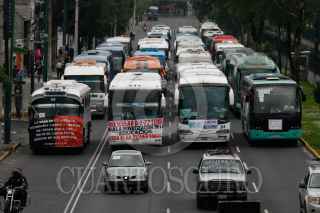 MÉXICO, D.F., 18SEPTIEMBRE2008.- Maestros provenientes del estado de Morelos arrivaron en caravana de autobuses al Distrito Federal, para demostrar su inconformidad relacionados a la reforma educativa. FOTO: SAUL LOPEZ/CUARTOSCURO.COM