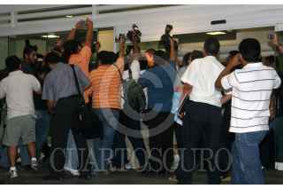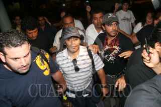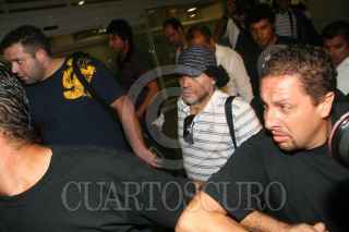 CANCÚN, QUINTANA ROO, 19SEPTIEMBRE2008.- Reporteros gráficos de distintos medios se amontonan con tal de tener una imagen del argentino Diego Armando "Pelusa" Maradona, quien llego esta madrugada al aeropuerto de esta ciudad como parte de su gíra de promoción del Showbol. FOTO: MARCO POLO GUZMÁN HERNÁNDEZ/CUARTOSCURO.COM