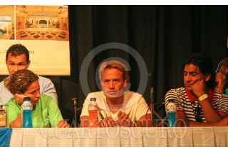 CANCÚN, QUINTANA ROO, 19SEPTIEMBRE2008.- Iris Mora, Luis Matador Hernández e Isaac Terrazas en la rueda de prensa previo al partido entre ex selectivos Méxicanos contra Argentinos dentro del Showbol. FOTO: MARCO POLO GUZMÁN HERNÁNDEZ/CUARTOSCURO.COM
