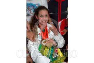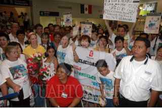 VERACRUZ, VERACRUZ. 23SEPTIEMBRE2008.- Familiares, amigos y público en general recibieron con porras a las deportistas paralímpicas veracruzanas Nelly Miranda y Angeles Hernandez a su arribo en el aeropuerto internacional "Heriberto Jara" de esta ciudad. FOTO: JOSÉ CANDELARIO/CUARTOSCURO.COM